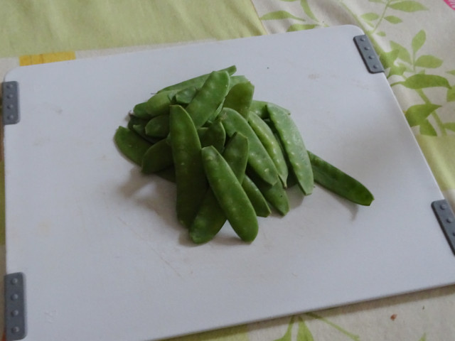 Enlever le fil des pois gourmands. Faire cuire 5 minutes à feu doux avec un petit peu de beurre et d'eau.