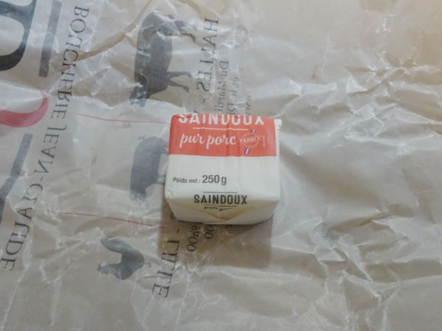1- Débarrasser la viande des peaux, des nerfs, des amas de graisse, des os. Le but est d'obtenir des morceaux de viande qu'il sera possible de découper en fines tranches. J'ai utilisé une tranche de paleron, morceau qui permet une découpe parfaite après avoir enlevé le nerf situé au milieu du morceau.