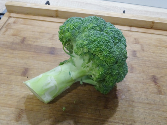 Détailler le brocoli. Les bouquets en bouchée, la tige en rondelle d'un demi centimètre. Dans une casserole, faire bouillir de l'eau salée. Plonger les morceaux de tiges pendant deux minutes, puis ajouter les bouquets pendant deux minutes. Égouttez et rafraîchissez à l'eau fraîche.