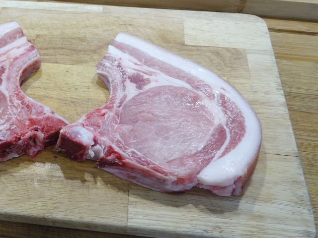 Il faut des côtes de porc première, un peu épaisse. On enlèvera le gras avant cuisson. Le boucher le fera sur simple demande.
