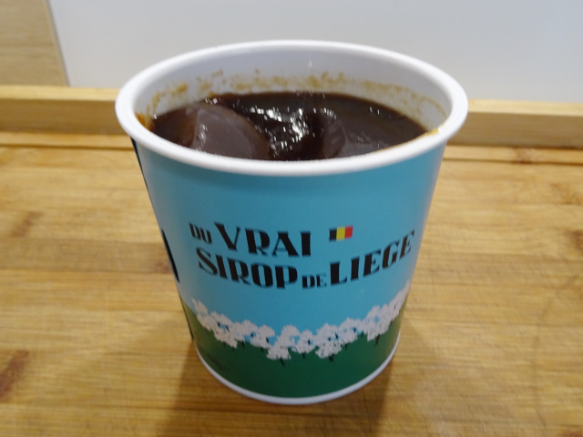 Le sirop de Liège est une compote assez épaisse, composée d'un mélange de pommes et de poires. C'est assez sucré, ce qui va adoucir le fromage de Herve assez fort. Il est conseillé de goûter avant utilisation pour doser la quantité déposée sur chaque côte.