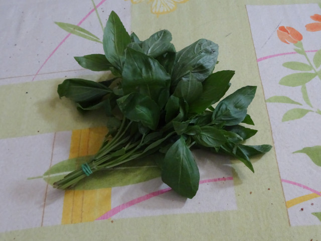 Laver le basilic, le couper au ciseau.
