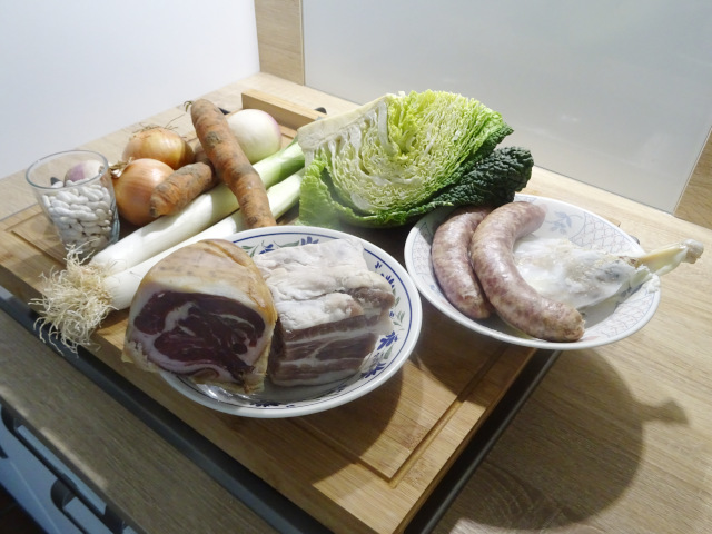La liste des légumes est forcément variable, il faut simplement respecter le temps de cuisson de chaque légume pour éviter de la purée de légumes. Pour les viandes, les viandes à cuire sont mises au début de la cuisson – dont le jambon sec – et les viandes déjà cuites, par exemple le confit, sont ajoutées dans le dernier quart d'heure, simplement pour les réchauffer.