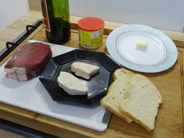 1- Avant la cuisson, préparer tous les ingrédients à portée de main. Tailler les tranches de pain de mie à la dimension des tournedos. Tailler des escalopes de foie gras, un peu plus petite que le tournedos, un bon cm d'épaisseur.