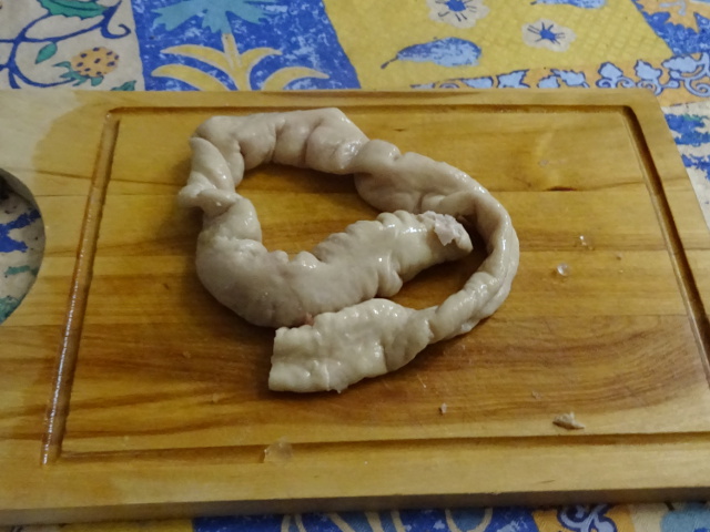 On parle ici de l'intestin de porc. Elles sont habituellement cuites au bouillon avec l'assaisonnement adéquate. Inutile donc de saler ou de poivrer.