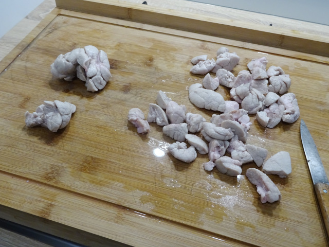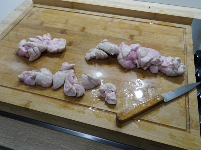 A ce stade, il faut continuer à séparer les plus ou moins gros éclats de ris de veau, de la taille d'une gousse d'ail au mieux. On continue à enlever les membranes de plus en plus fines, pour obtenir de petits morceaux de ris de veau, pratiquement prêts à être dégustés.