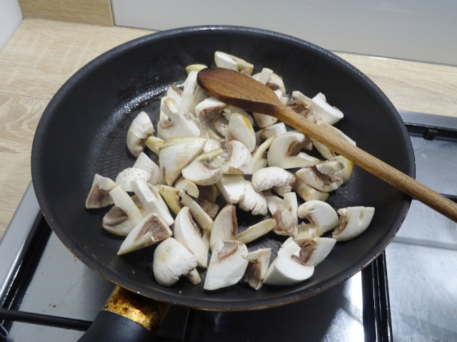 Après cuisson, prélever environ deux cuillères à soupe de champignons et les couper en dés de 3 à 4 mm. Réserver.
